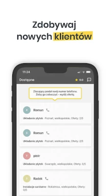 Z aplikacją Fixly dostęp do strumienia nowych zapytań od klientów staje się niezwykle prosty. Przeglądaj kategorie takie jak doradztwo prawne i finansowe, zlecenia szkoleniowe, prace dla złotej rączki, dietetyka czy projektanta wnętrz. Wybierz najbardziej odpowiadające Twoim kwalifikacjom, stwórz atrakcyjną ofertę i zyskuj. Narzędzie to zapewnia nie tylko bezproblemowy kontakt z potencjalnymi zleceniodawcami, ale także umożliwia budowanie wiarygodnego, profesjonalnego wizerunku. Stwórz profil prezentujący Twoje dotychczasowe realizacje poprzez zdjęcia i opisy, a także gromadź cenne rekomendacje od zadowolonych klientów Fixly, co znacząco wzmacnia Twoją pozycję na rynku.