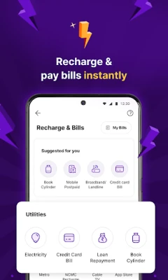 PhonePe to wszechstronna aplikacja płatnicza. Użyj BHIM UPI, kart kredytowych/debetowych lub portfela, aby doładować telefon, opłacić rachunki za media i dokonywać natychmiastowych płatności w ulubionych sklepach online i offline. Inwestuj w fundusze inwestycyjne i kupuj ubezpieczenia, w tym samochodowe i motocyklowe, wszystko w jednym miejscu.